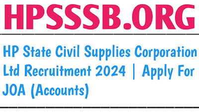 HP State Civil Supplies Corporation Ltd Recruitment 2024 | For JOA (Accounts) - HP State Civil Supplies Corporation Ltd had announced the notification for the recruitment of the applicant for the post of JOA (Accounts). This particular drive of the recruitment is being held by the board for total of 02 vacancies. Those who are the candidates willing to apply for this opportunity should check out this full article for larger details. The offline application submission had been commenced from 31 December 2023 & last date for the submission is 27 January 2024. But before proceeding for the offline application process the candidates are requested to please check out the HP State Civil Supplies Corporation Ltd Recruitment 2023 for full-fledged details.