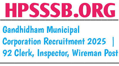 Gandhidham Municipal Corporation Recruitment 2025 | For 92 Clerk, Inspector, Wireman Post, (Apply Offline) - Gandhidham Municipal Corporation had released the recruitment detailed notification in order to place the aspiring persons for the post of Clerk, Sanitary Inspector, Electrician, Wireman as per the announced notice. This particular recruiting drive by the organization is being conducted for the total of 92 vacancies. So those candidates keen or willing to get the job or want to register for this wonderful job opportunity should check out this whole article for more and more details regarding this drive. The board had started the offline application submission from Started & last date for the submission for the application is 20 April 2025. But before proceeding on for the filling of the offline application process the person are instructed to kindly check out the Gandhidham Municipal Corporation Notification 2025 for large and greater details.